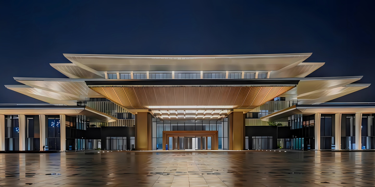 白云国际会议中心绿色设计结合岭南气候特征和气候数据,以“被动优先,主动优化”为绿色建筑设计原则,选择适宜的综合设计策略。