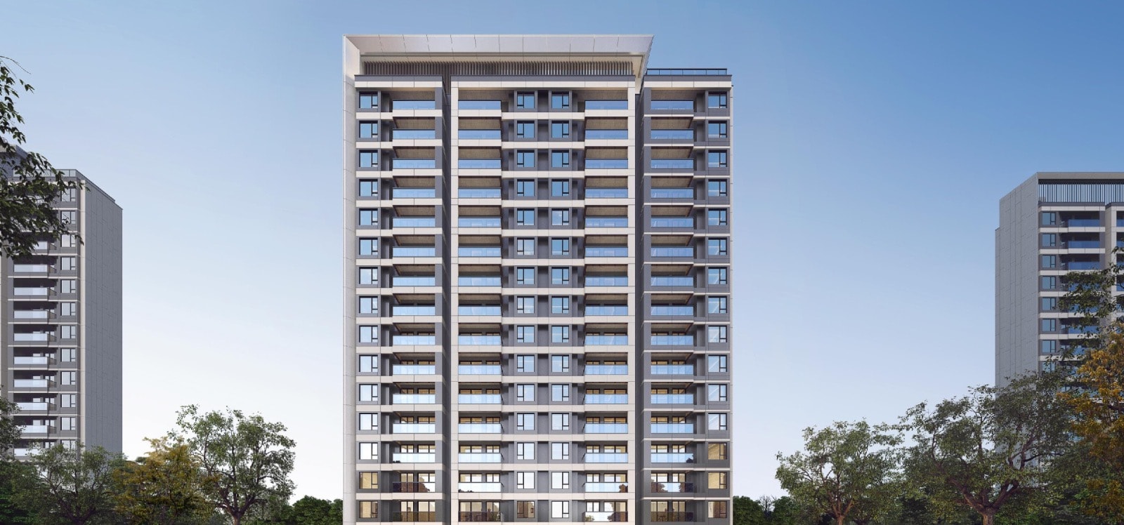 外遮阳:东、南、西向无阳台外窗(含凸窗)设置中置百叶遮阳;有阳台外窗为阳台板建筑自遮阳