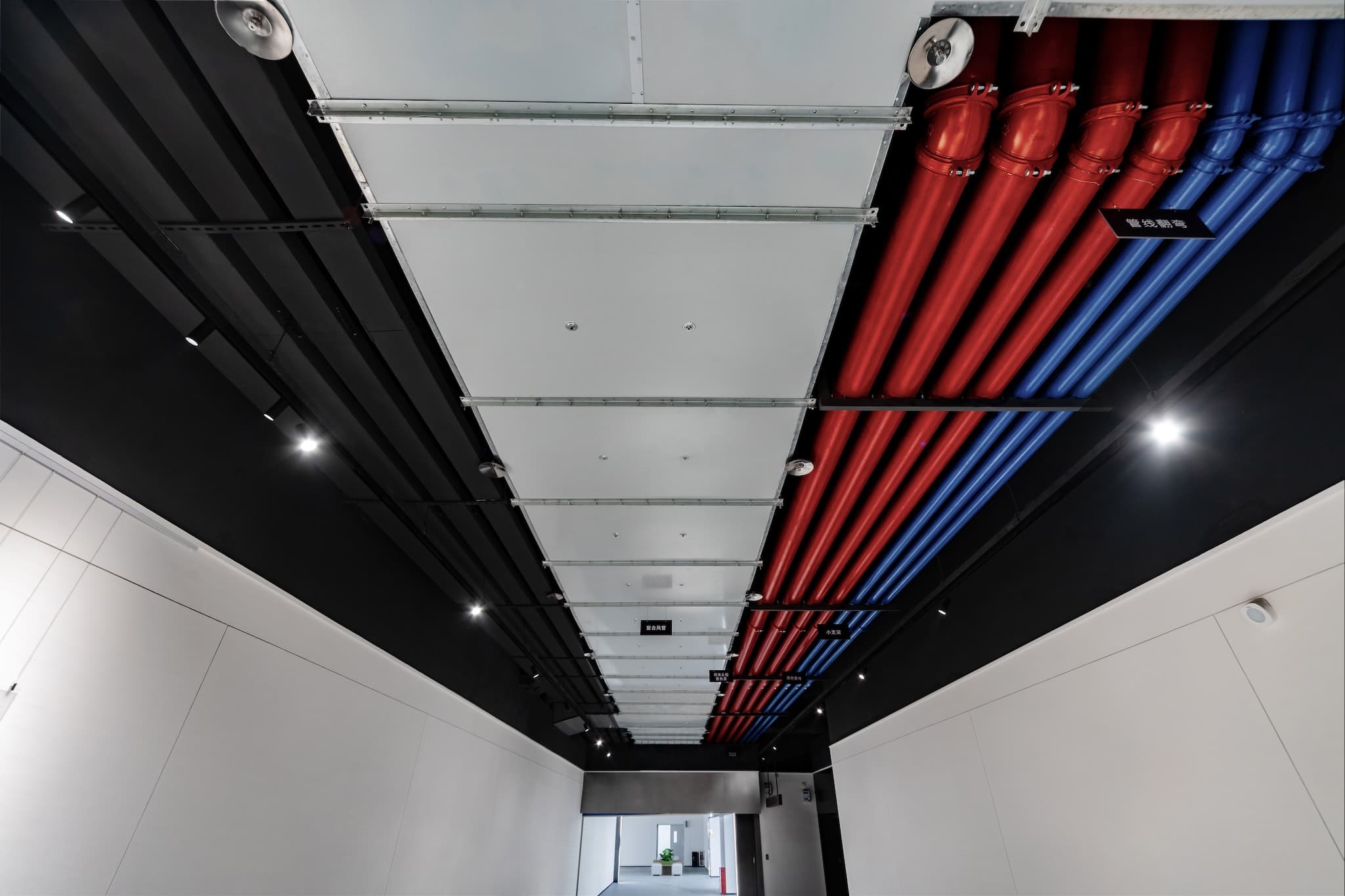 越秀地产研发中心占地6,132㎡,由地上和地下两部分组成,具备「树标培训、产技研发、应用试验、物料管理」四大核心职能。