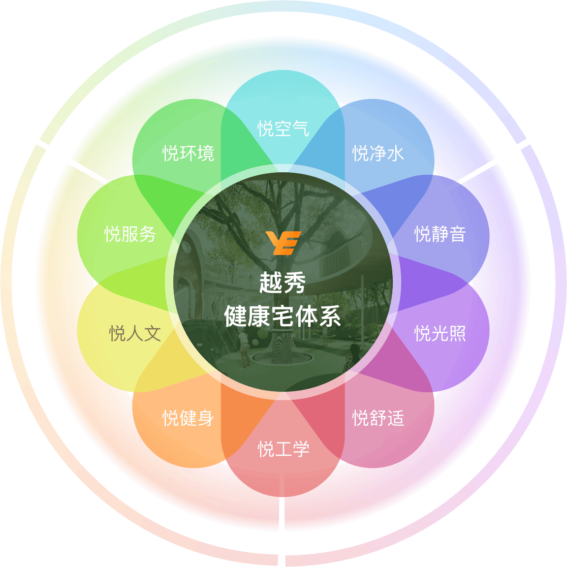 (悦空气,悦净水,悦静音,悦光照,悦舒适,悦工学,悦健身,悦人文,悦服务,悦环境)