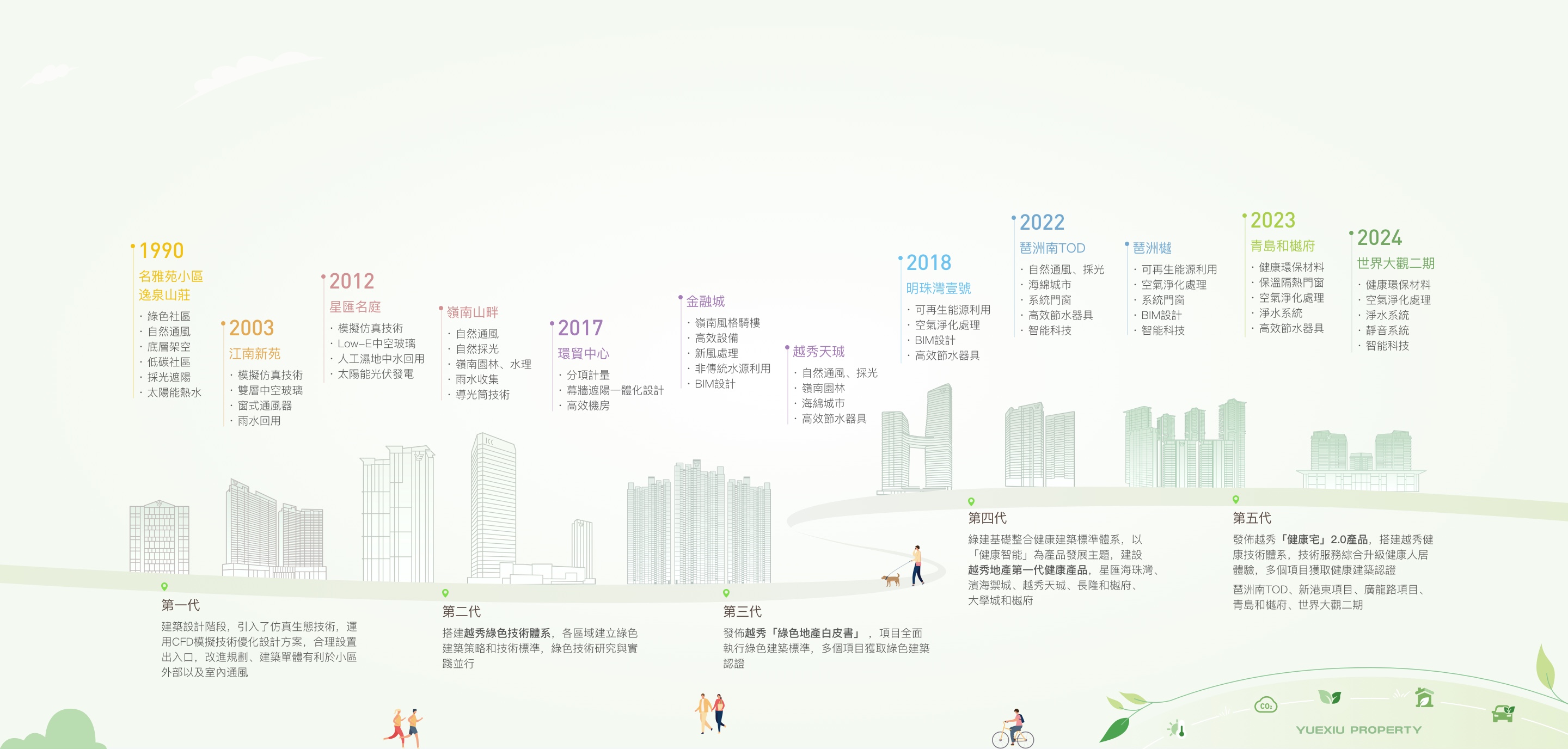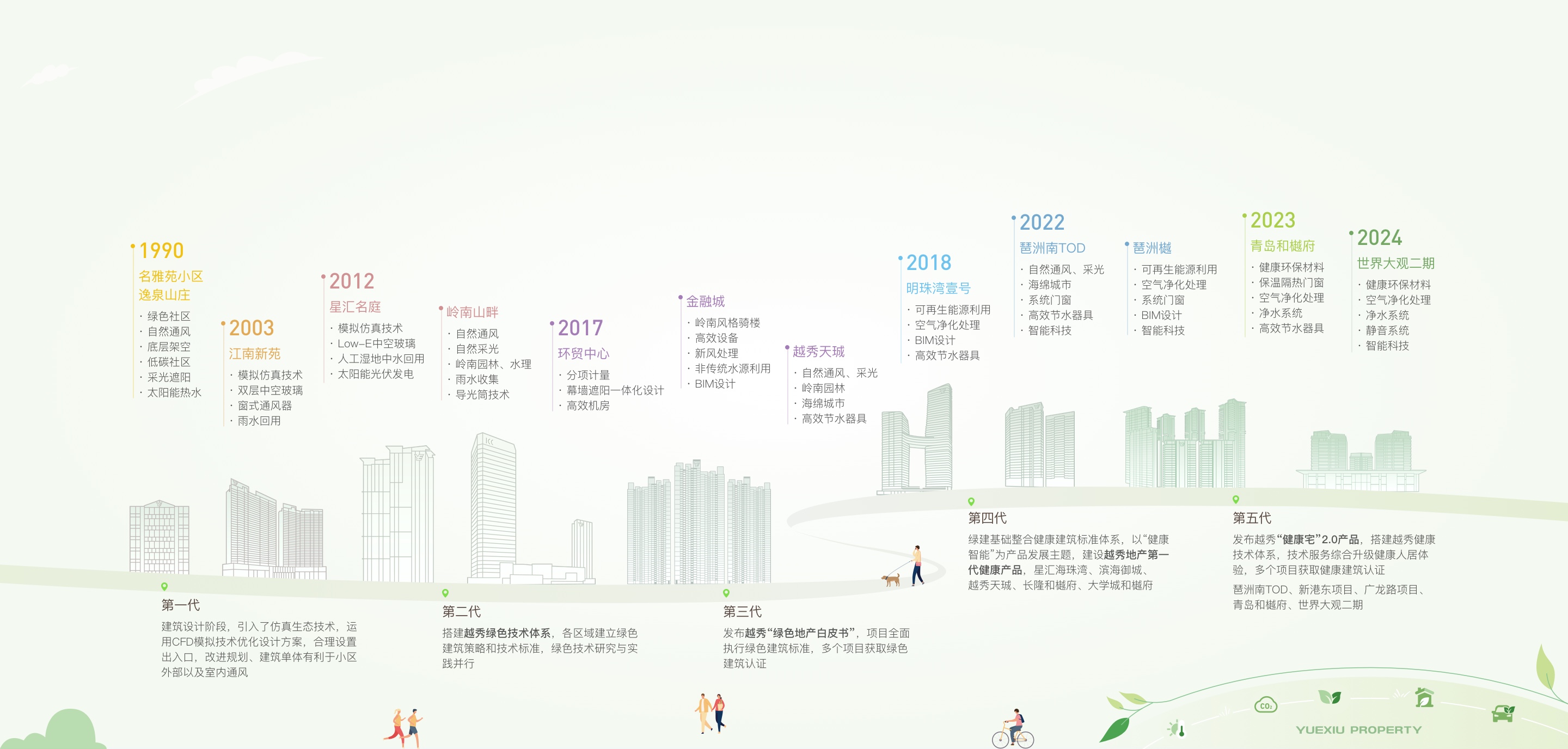 越秀地產2024年8月應用新一代“健康宅技術體系”,深度聚焦客戶健康生活,匠心打造融合健康舒適、綠色科技、智慧安全於一體的好房子、好社區,引領未來健康人居,邁向“淨零”目標。該體系在設計階段融入了先進的健康理念,通過優化健康佈局和材料選擇,確保室內空氣質量、自然採光和噪音控制,提升居住舒適度。在施工過程中採用環保材料和高效施工技術,減少對環境的影響。在運營階段,通過主動化、智能化系統,實現對建築能耗的實時監控和管理,確保建築在使用過程中保持高效節能。