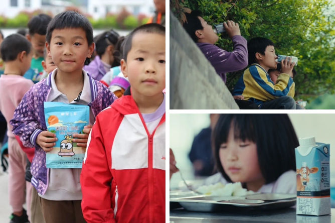 在关注乡村文化教育的同时,本次公益活动更以实际行动为鹏程街道在拱小学学生们的营养关怀贡献一份力量。越秀商管协同越秀集团旗下中华老字号品牌皇上皇、风行乳业等捐赠皇上皇食品和谢添地黑土娟姗纯牛乳,为学生们提供“一杯好奶、一份美味”的爱心营养组合,守护健康成长。