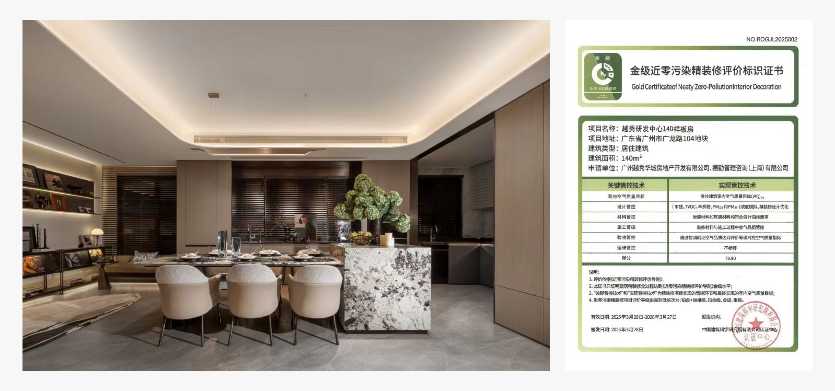 图:越秀地产研发中心近零污染精装修样板间及其近零污染金级认证